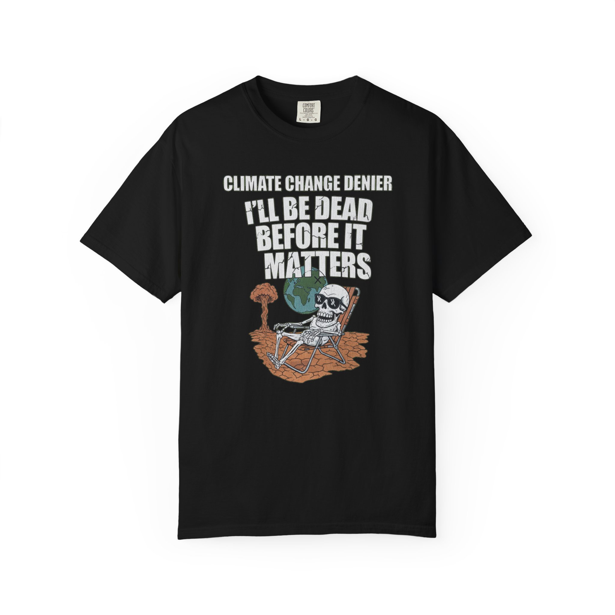 Nothing screams “I’ve got cash to burn” like a shirt that bets on you outliving the planet. Made from 100% ring-spun US cotton, it’s so comfy you’ll forget the ice caps are melting.